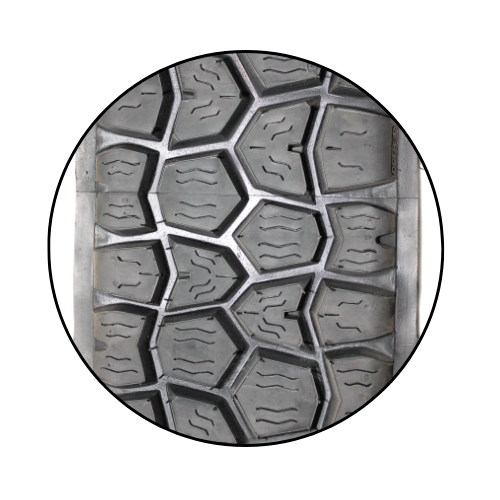 Borracha com característica ideal para aplicação nos pneus de veículos leves, com excelente aderência, resistência à abrasão e alta quilometragem. A borracha aplicada nas bandas DCA asseguram excelente performance nos pisos com e sem pavimento.